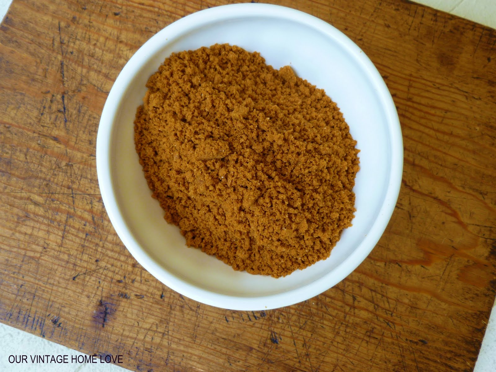 First, take half the package of cookies and put them in a food processor to crumble them up. Or you could just stick them in a ziploc bag and use a rolling pin to smash them up until they look like this.