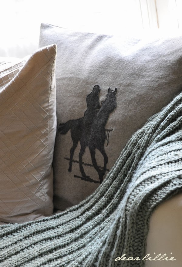 Earlier this fall the lovely Michaela asked if we would be interested in picking out a few things from the fabulous decor shop she works for called Lulu and Georgia. I jumped at the chance. They have so many lovely items to choose from that I had a hard time deciding. I was originally looking for some pillows for our new guest bedroom (that as of this afternoon, has finally gotten to the point that I think I can take some "progress" photos), but then spotted these Sport of Kings pillows. And then I just kept coming back to them. Even though they weren't what I had in mind for the guest bedroom I loved them. I thought they would look good in our study and eventually thought maybe I would bring them up to Jason's. Once they arrived though I put them in the study and every time I walked by them I kept thinking how they looked so cozy and so I moved them into our family room. Even though I knew the colors would work I wasn't sure I would like the feel of them in here but I was wrong. Once I put them on the sofa I knew that was the perfect spot for them. They help add a warmer feeling to the couch that is perfect for fall and winter and I love the size. I went with 2 of the 22" inch ones and they fit perfectly on our huge sectional. I also got the beautiful Beatrice woven throw that Jon has pretty much claimed it as his - haha!